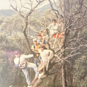 Início dos anos 90. Foto em árvore, com os colegas da época, a caminho da Catarina Pai. Nesse dia, acampamos lá. Fizemos fogueira, levamos vinho; esquentamos o vinho na fogueira dentro de caixinha de leite moça! Ficou marcado na memória.